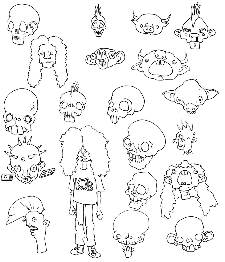 Looking for SIMPLE LINE DOODLES designs of stuff inspired by punk rock heavy metal and skateboarding.